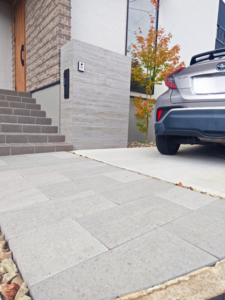 アプローチは大谷石風の化粧平板を使用することでアプローチにもアクセントを持たせています。